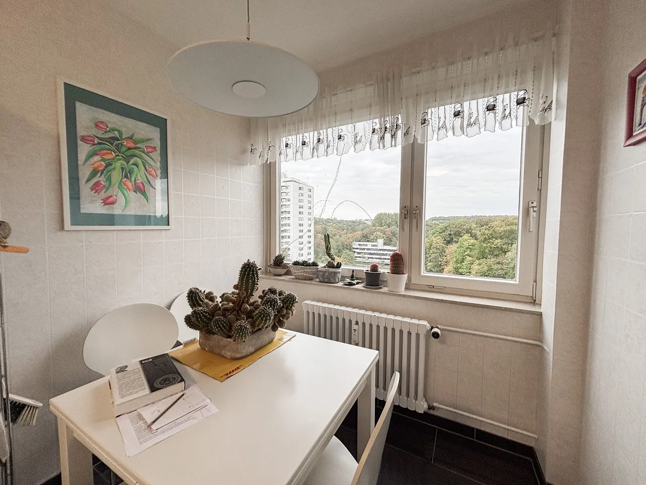 Die attraktive Drei-Zimmer-Wohnung liegt auf der achten Etage eines gepflegten Mehrfamilienhauses – natürlich mit Aufzug.