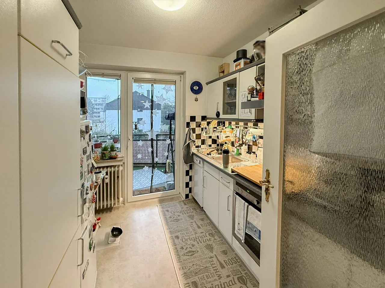Das Mehrfamilienhaus aus dem Jahr 1974 mit nur acht Parteien im Eingang, befindet sich in einem gepflegten Zustand. Hier wohnt man zentral und doch ruhig – eben mitten im Städtchen.