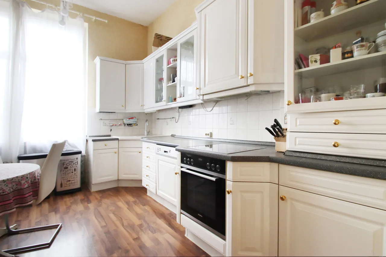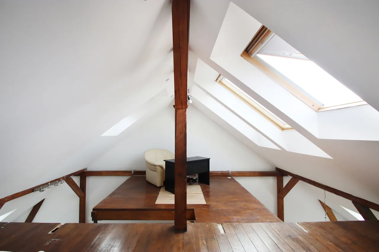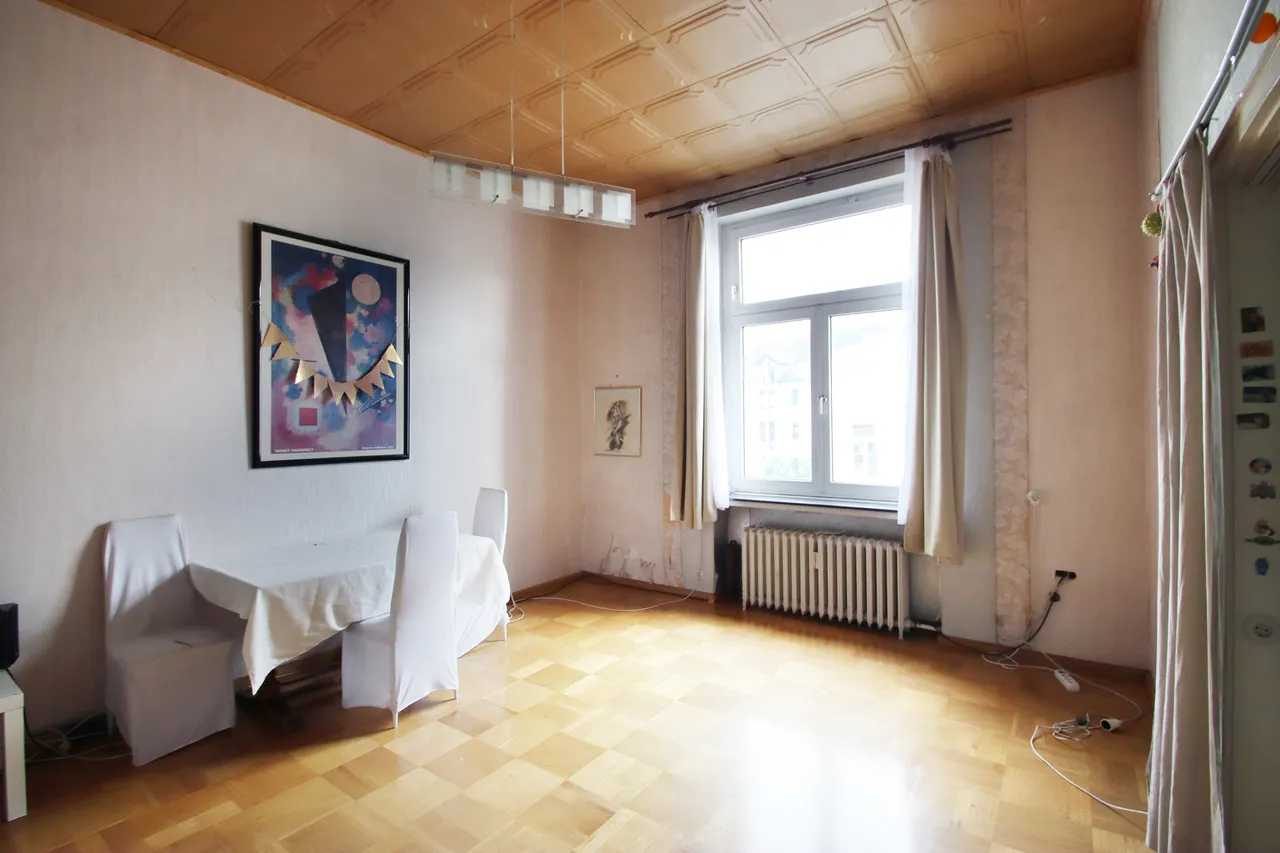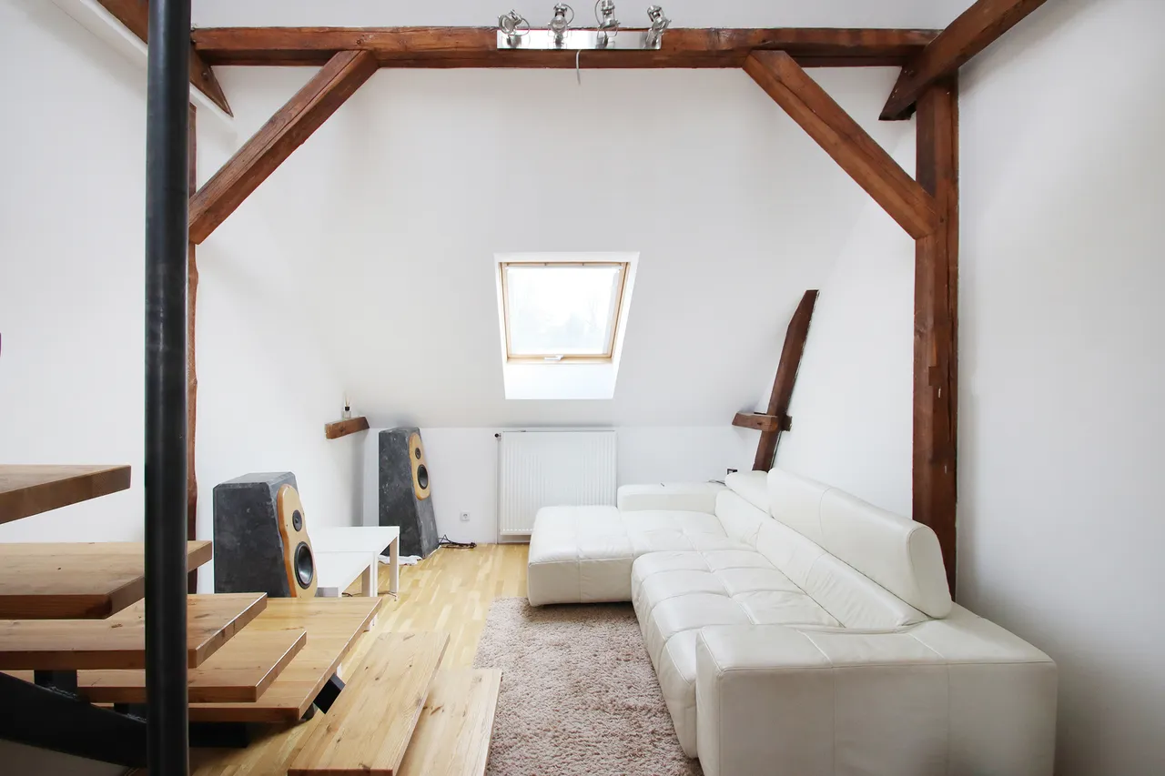 Holzbalkendecken und Raumhöhen von bis zu 3,80 m verleihen charakteristischen Altbaucharme.