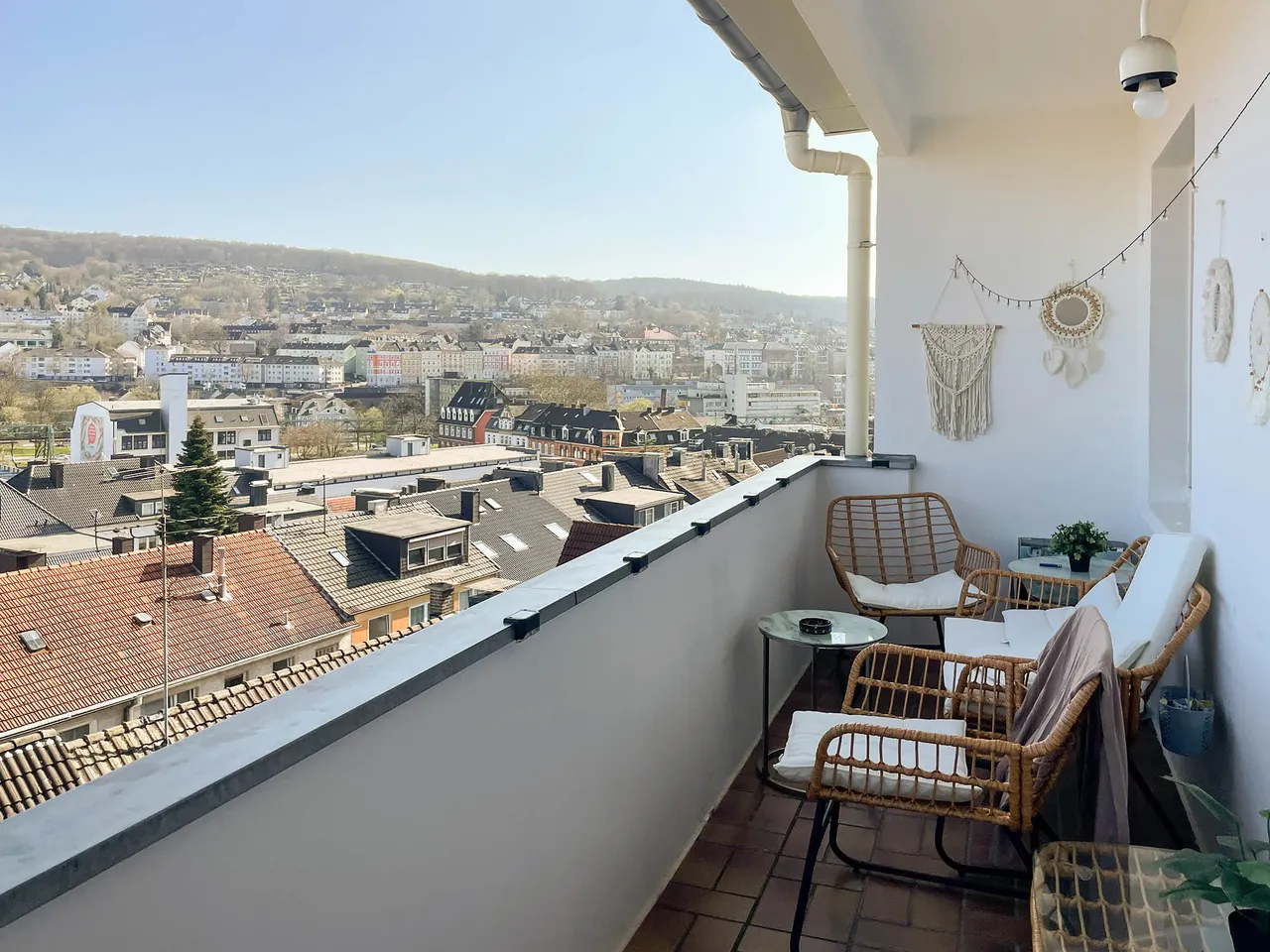 Den Sommer genießen Sie oder Ihre Mieter auf dem überdachten Balkon mit einem herrlichen Ausblick über Barmen – hier lässt es sich leben.