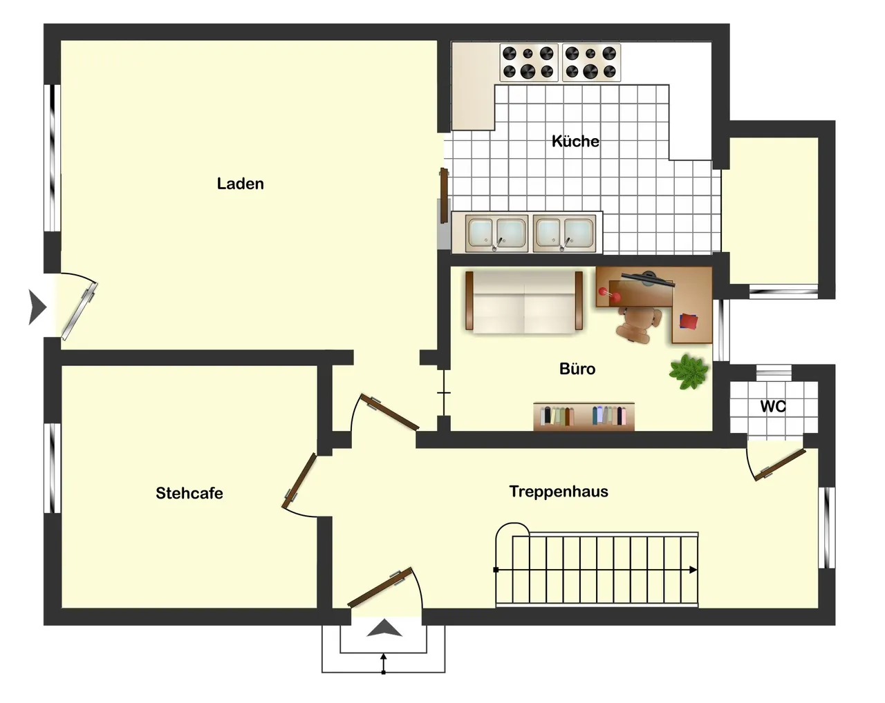 Das vielseitig nutzbare Ladenlokal wurde zuletzt als Bäckereigeschäft genutzt und verfügt über zwei separate Eingänge. Hier stehen insgesamt ca. 63 m² zur Verfügung.