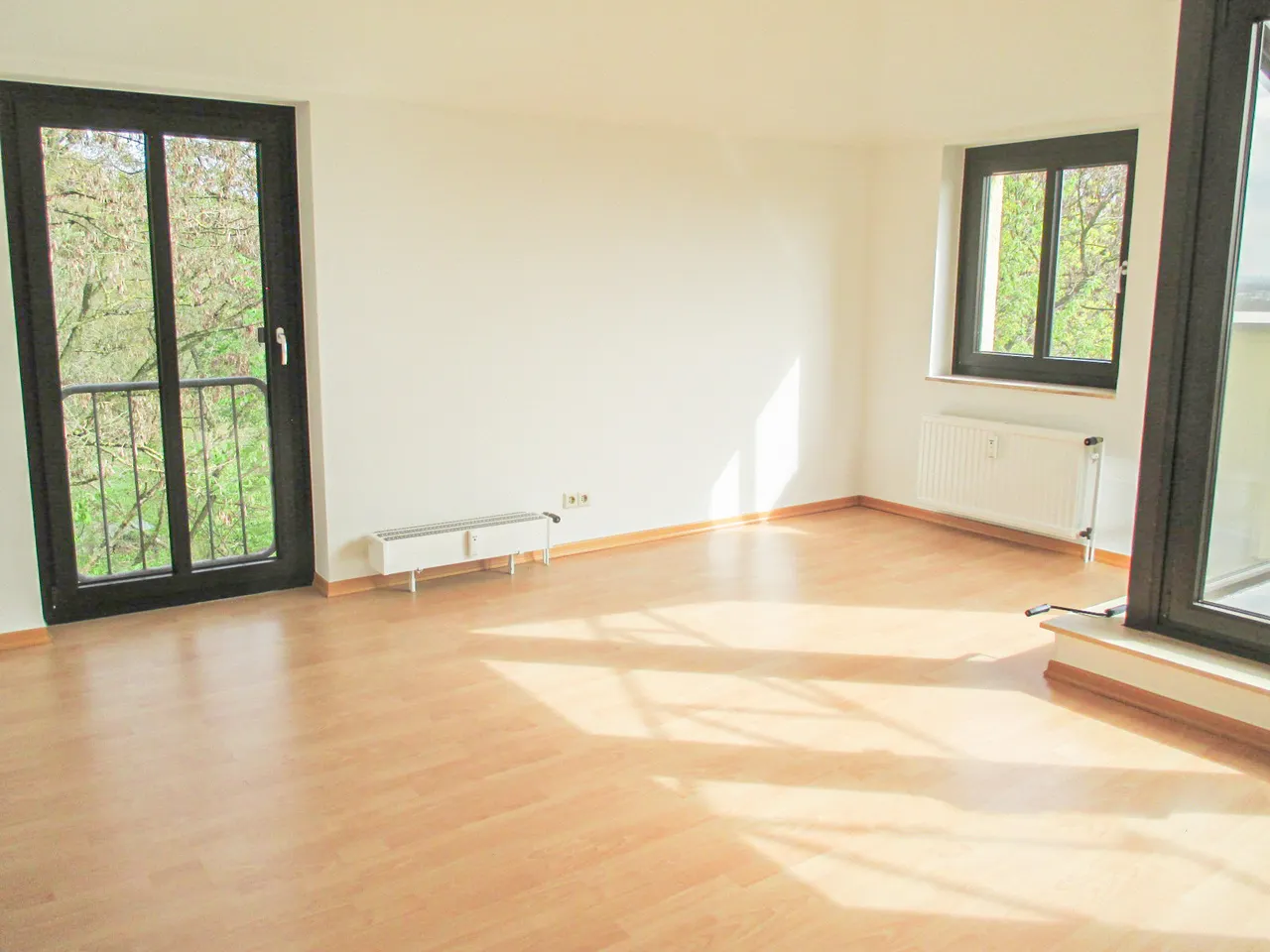 Diese ausgesprochen schön geschnittene, ruhige und sonnige 2 1/2 Zimmer-Wohnung liegt im 4. Stock, eine Wohnung fast ohne Schrägen, nach 3 Seiten ausgerichtet, mit Fahrstuhl. Jede Etage hat nur 2 Wohnungen. Bodentiefe Fenster rundum, sodass Sie Sonne pur den ganzen Tag haben. Ein Traum für das Auge mit Blick in die Ferne und die Baumkronen. Die gesamte Wohnung ist frisch renoviert, ganz in weiß gehalten, mit neuen weißen Türen und Zargen. Einheitlicher ursprünglicher Laminatboden in den Wohnräumen. Ganz neue Fensteranlage in allen Räumen.