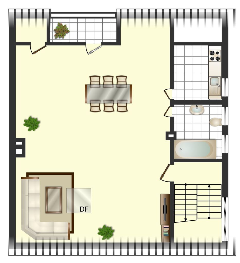 Das Dachgeschoss beherbergt ein gemütliches Appartement mit eigener Küche, Bad und Loggia.