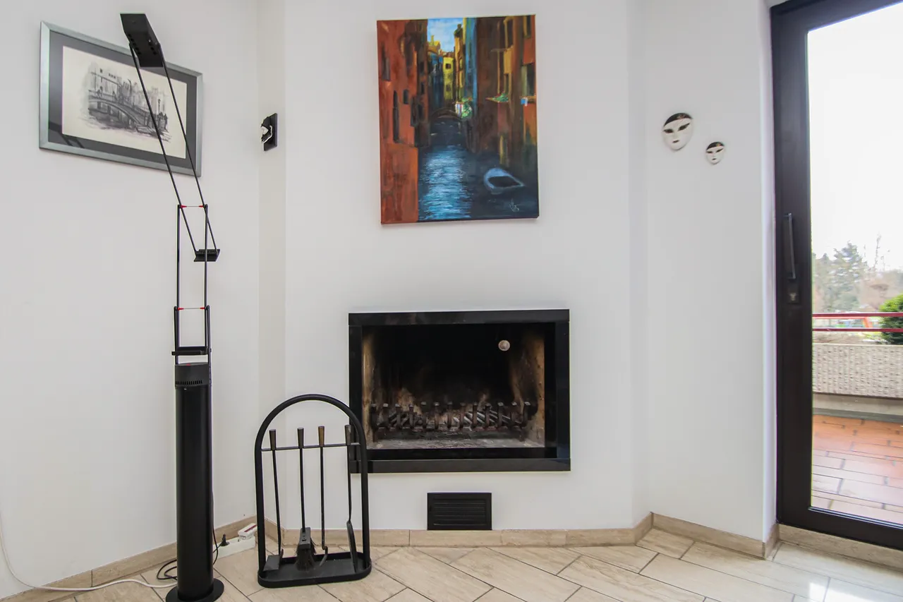 Das Highlight ist der gemütliche Wohn-/Essbereich mit dem offenen Kamin und Zugang zum sonnigen Balkon – hier können Sie zu jeder Jahreszeit entspannen.