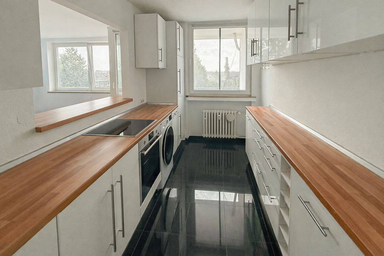 Schlafzimmer, eine separate Küche und ein geschmackvolles Wannenbad vervollständigen das Raumangebot. Die moderne und neuwertige Einbauküche verfügt über namhafte Elektrogeräte.